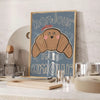The blue croissant art print measures 70 x 50cm is made from recycled paper and comes rolled up in a cardboard tube.